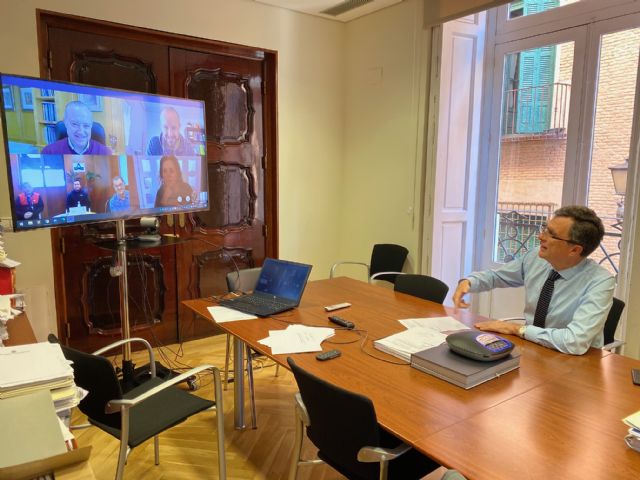 El alcalde de Murcia, José Ballesta, contactó esta mañana a través de videoconferencia con un grupo de operarios de Aguas de Murcia que, de forma voluntaria, se han confinado en la planta potabilizadora de La Contraparada, para garantizar el suministro permanente y seguro de agua durante toda la crisis sanitaria.