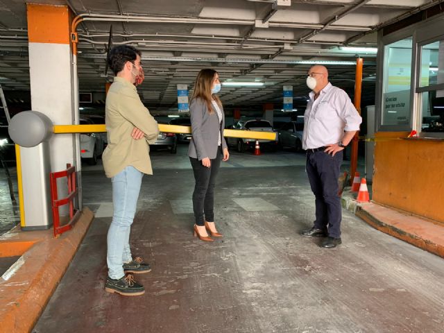 La concejala de Movilidad Sostenible y Juventud, Rebeca Pérez, ha visitado esta mañana el aparcamiento del Plano de San Francisco, que, junto al de Glorieta de España, ofrece a sus usuarios una hora gratis desde ayer.