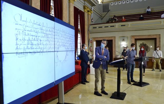 El alcalde de Murcia, José Ballesta, junto al concejal de Cultura y Recuperación del Patrimonio, Jesús Pacheco, presentó esta mañana los 16 proyectos seleccionados de la primera convocatoria de ‘Reactivos Culturales’ en el Salón de Plenos, que se enmarcan en la línea destinada a Murcia Medieval y las Tres Culturas. El Ayuntamiento ha destinado a esta convocatoria, que supone la contratación inmediata de las iniciativas culturales seleccionadas, un presupuesto de 80.000 euros.