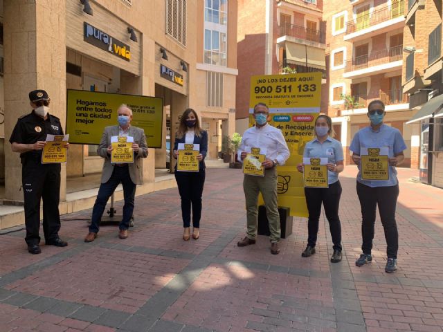 El servicio de limpieza viaria y gestión de residuos, a través de Ferrovial Servicios, tiene un servicio gratuito de recogida llamando al 900511133, la web murciaciudadsostenible y las redes sociales adheridas a esta web.