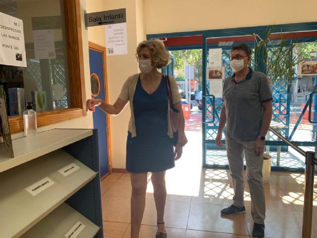La concejala de Agenda Urbana y Gobierno Abierto, Mercedes Bernabé, ha visitado hoy la Biblioteca José Saramago de Murcia con motivo de su reapertura al público de manera presencial a través del servicio de préstamo y devolución de libros.