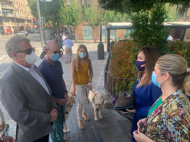 Hay que recordar que el pasado mes de febrero, las concejalas Rebeca Pérez y Paqui Pérez realizaron un recorrido por diversas calles de Murcia, acompañadas de las Asociaciones de Usuarios de Perros Guía y de Personas Sordociegas, para ver el funcionamiento de los pasos y semáforos y comprobar in situ en qué zonas no existen dispositivos pasblue y es necesario implantarlos.