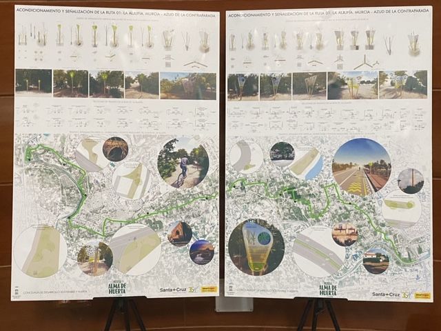 Todas las rutas cuentan con el mobiliario urbano necesario en los distintos itinerarios y tienen la señalética propia para toda la huerta de Murcia creada de forma específica para constituir un sello de identidad propio y uniforme.