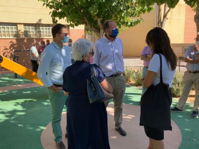 El concejal de Desarrollo Urbano y Modernización de la Administración, José Guillén y el concejal de Barrios y Pedanías, Marco Antonio Fernández, han visitado el nuevo jardín de Los Martínez del Puerto, situado junto al centro cultural de la pedanía, que se suma a las más de 600 zonas de juegos infantiles repartidas por todo el municipio.
