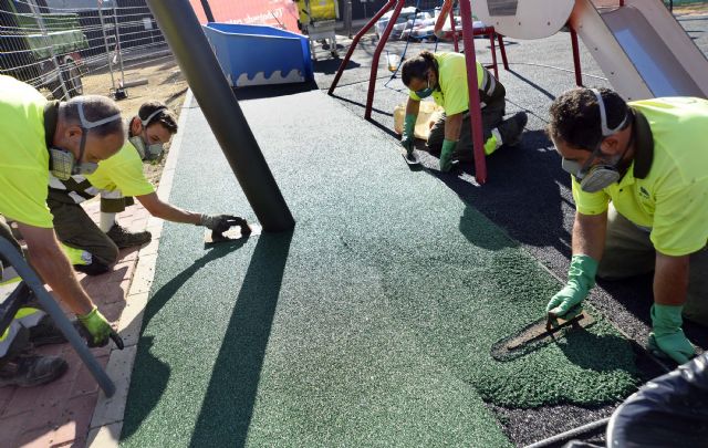 El Ayuntamiento de Murcia instala y sustituye más de 60.000 metros cuadrados de suelo antimpacto