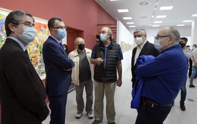 El alcalde de Murcia, José Ballesta, junto al concejal de Cultura y Recuperación del Patrimonio, Jesús Pacheco, y el edil de Desarrollo Urbano y Modernización de la Administración, José Guillén, presentó esta mañana la exposición ‘1952. 1953. 1955’, compuesta por obras de tres artistas de gran trayectoria: los pintores Antonio Ballester y Esteban Linares y el fotógrafo Ángel Fernández Saura, quienes beben de la influencia del Grupo Pórtico de Zaragoza, que rompió con la manera clásica y tradicional de entender el arte en los años cincuenta.