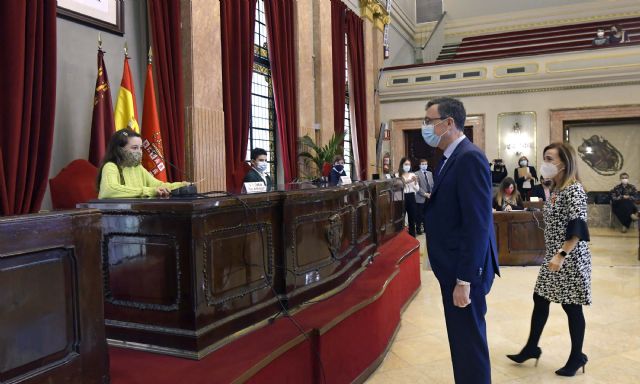 Durante el Pleno telemático, José Ballesta destacó “el entusiasmo, la vitalidad y la energía” de los escolares y mostró su convicción de que “esta ciudad va a estar muy bien gobernada en el futuro, ya que estos niños han demostrado hoy su gran responsabilidad y compromiso, así que Murcia puede estar muy tranquila con las siguientes generaciones que ocuparán mañana los puestos de responsabilidad en nuestras instituciones”.