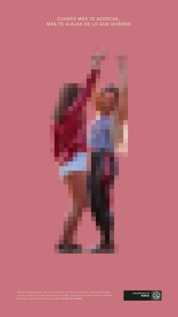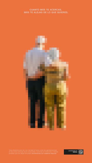 La campaña, diseñada por la agencia Sublima Studio, plantea con un lenguaje gráfico fresco y dinámico diferentes contextos con los que la población universitaria puede sentirse identificada: los viajes, el ocio con amigos, las reuniones con la familia, representados por la imagen de los abuelos; y los abrazos y muestras de afecto. Estas cuatro ideas gráficas van acompañadas del texto: Toma distancia para ver con claridad el futuro, evita las aglomeraciones en las zonas comunes de la universidad, reuniones en domicilios o fiestas privadas que nos alejan de poder abrazarnos/ bailar sin miedo/ encontrarnos con nuestros mayores/ descubrir el mundo.