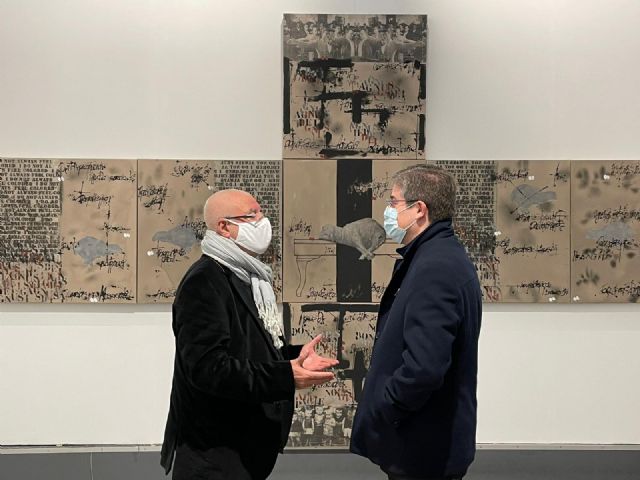 El concejal de Cultura y Recuperación del Patrimonio, Jesús Pacheco, ha presentado esta mañana el nuevo Reactivo Cultural ‘El retablo del Cordero Místico', de José María Garres. Al acto han asistido también Carlos Varcarcel, presidente de la Cofradía Cristo de la Sangre, y Pedro Alberto Cruz, comisario de la exposición.