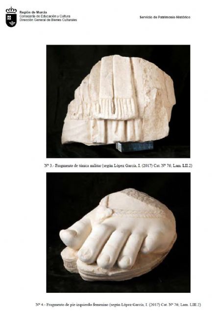 La Asociación para la Conservación de la Huerta y el Patrimonio de Murcia (Huermur) se ha personado en el expediente que actualmente está tramitando la Consejería de Cultura, a instancias del Ministerio de Cultura, para proteger como Bien de Interés Cultural BIC una colección de partes de esculturas de época romana, que fueron reencontradas en una colección de Murcia en 2016. Se trata concretamente de un conjunto piezas de esculturas de mármol blanco datadas entre finales del siglo I a.C. y el siglo I d.C., a excepción de una de ellas que pertenece al siglo III/II a.C. y está hecha de piedra calcarenita. El lote fue declarado inexportable a través de una Orden Ministerial en 2019 previo informe de la Junta de Calificación, Valoración y Exportación de Bienes del Patrimonio Histórico Español.