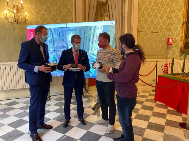 Es el caso de las visitas virtuales en 360º que se pueden realizar desde la web de la Navidad o desde la App TuMurcia-TuNavidad, y que esta mañana han presentado el concejal de Desarrollo Urbano y Modernización de la Administración, José Guillén y el concejal de Cultura y Recuperación del Patrimonio, Jesús Pacheco en el Real Casino de Murcia.