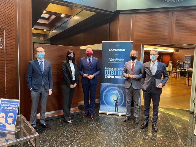 En la Mesa Redonda, "Digitalización de las empresas: nuevos tiempos para la innovación y la transformación digital" han participado Enrique Santiago, Director de Grandes Empresas de Telefónica Mediterráneo; Luis Miguel Aroca, Director IT Liwe Española S.A; Alejandro Puigdengolas, Director Adjunto de Jisap y Juan Vivancos, Director Transformación Digital AMC Natural Drinks group. El foro ha estado moderado por Víctor Rodríguez, Jefe de Edición de La Verdad.