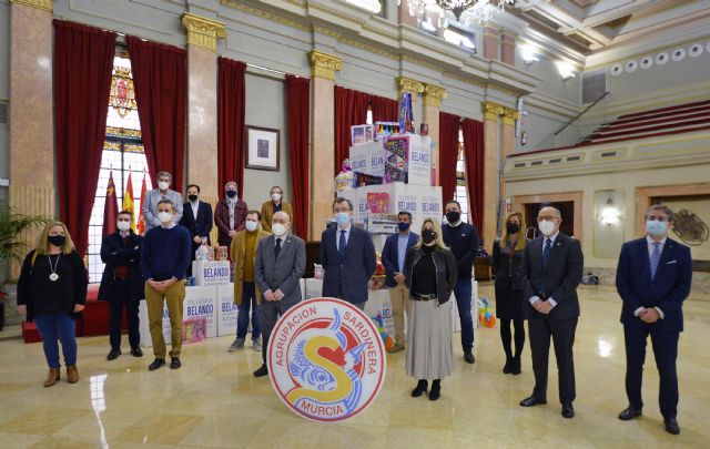 El alcalde de Murcia, José Ballesta, junto a los representantes de diversas entidades benéficas murcianas, recibió hoy la donación de juguetes realizada por la Agrupación Sardinera, que se harán llegar estas Navidades a niños en situación de vulnerabilidad.