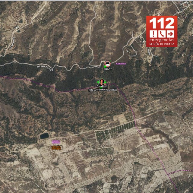 Hasta el lugar se dirigen Agentes Medioambientales de la zona, así como Bomberos del S.E.I.S del Ayuntamiento de Murcia. Una ambulancia del Servicio de Urgencias permanece a la espera en el Camino de los Puros para atender y trasladar al herido, una vez que se realice la evacuación a pie del herido, un hombre de aproximadamente 60 años.