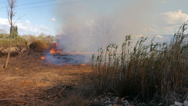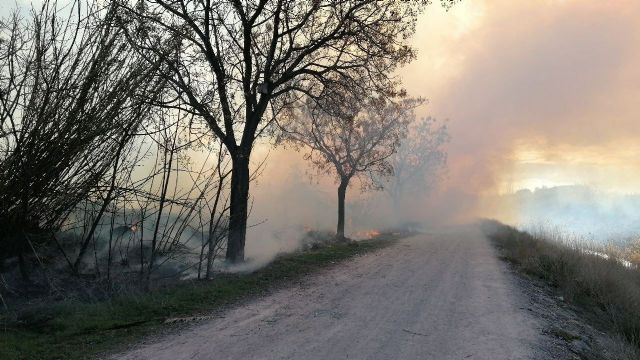 Efectivos adscritos al Plan Infomur, de lucha contra los incendios forestales, han sido movilizados para extinguir un incendio de vegetación de ribera en los dos márgenes del río Segura, en la pedanía murciana de Puebla de Soto en el carril Torre Modesto, Murcia.