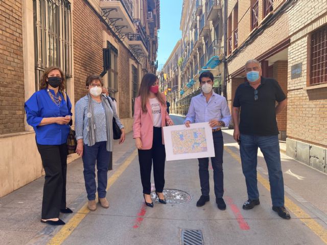 La portavoz del Partido Popular de Murcia, Rebeca Pérez, junto al presidente de la Junta Municipal Centro Oeste, Diego Avilés, visitaron esta mañana las calles San Nicolás y Riquelme, junto a los vecinos de los barrios en donde se va a llevar uno de los proyectos estratégicos de ciudad que dejó hecho el Partido Popular del Ayuntamiento.
