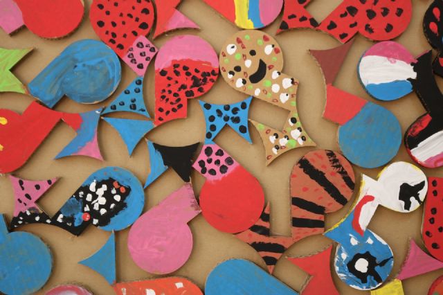 Para la creación del material expositivo, durante todo el mes de mayo se ha trabajado en talleres de expresión artística identificado algunas de las emociones vividas durante el confinamiento, seleccionando técnicas artísticas como el dibujo, la fotografía o la pintura para plasmar estas experiencias en forma de mural individual o colectivo.