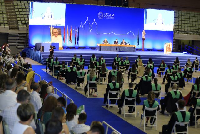 La institución siempre celebra sus graduaciones en el Templo del Monasterio de Los Jerónimos, pero dadas las actuales circunstancias, y haciendo un importante esfuerzo, las ha trasladado al Palacio de los Deportes de Murcia, para seguir posibilitando que los alumnos estén acompañados de familiares, de forma segura y cumpliendo en todo momento con la normativa Covid vigente.