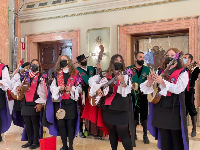 el concejal de Cultura, Turismo y Deportes, Pedro García Rex, han recibido, junto a otros miembros de la corporación municipal, a una representación de las tunas participantes en la 25ª edición del Certamen Internacional del Barrio del Carmen que congrega, esta vez, a nueve agrupaciones procedentes de Puerto Rico, Colombia, Chile, Portugal y España (Valencia, Orihuela, Murcia y Almería).