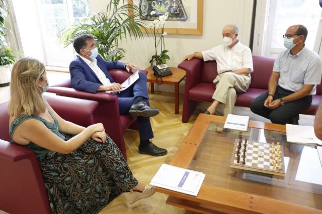 El Alcalde de Murcia José Antonio Serrano y la concejala de Mayores, Vivienda y Servicios Sociales, Paqui Pérez, han mantenido esta mañana un encuentro con el presidente de la Fundación Jesús Abandonado, José Moreno, y con el director, Daniel López.