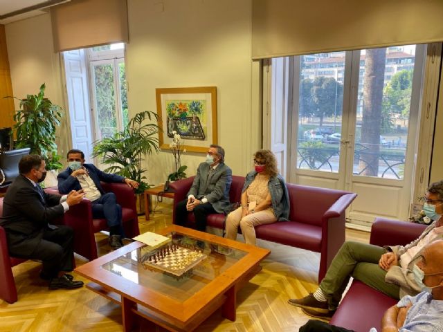A la reunión en el Ayuntamiento de Murcia, también han asistido el vicepresidente de la Casa Regional de Murcia en Barcelona, José Gómez, así como María del Carmen Pérez, vocal de la misma, y el delegado en Murcia de esta institución, Federico Ferri, además del concejal de Educación, Agenda Urbana y Gobierno Abierto, Antonio Benito.