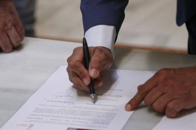 El alcalde de Murcia, José Antonio Serrano, ha firmado hoy junto al rector de la Universidad de Murcia (UMU), José Luján, el convenio para la creación de la Cátedra de Agenda Urbana y Desarrollo Estratégico Local, gracias al cual se establecen las bases de colaboración técnicas y económicas para crear un espacio dedicado íntegramente a la investigación, formación y divulgación en el que participen tanto profesores y alumnos universitarios como profesionales del sector.