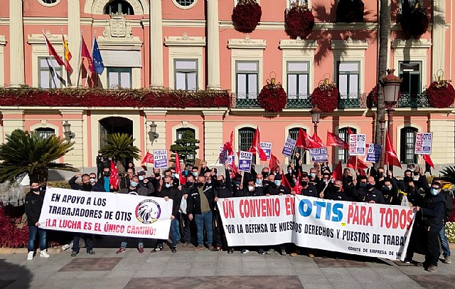 Los trabajadores de OTIS en su 17° día de huelga salieron el pasado jueves a protestar por las calles de Murcia. El recorrido ha comenzado en las oficinas de OTIS del Infante y ha acabado en el ayuntamiento.