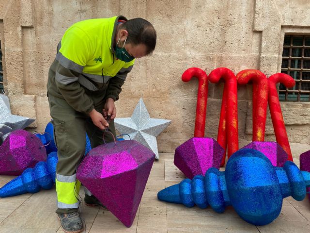 Los murcianos recuperan la alegría en la plaza de la glorieta que, a partir de hoy, va a lucir su propio árbol de navidad. Las decoraciones las ha colocado a lo largo de la mañana la empresa STV Gestión. Además mañana se terminará con la colocación de las luces. Una tradición de la ciudad de Murcia que se recupera tras quince años.