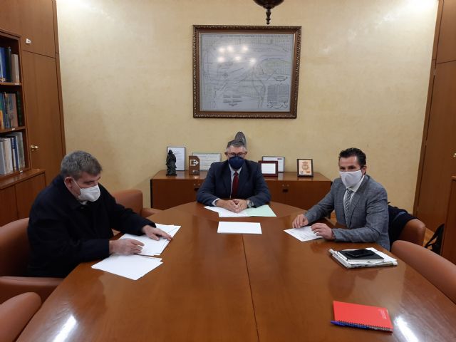 El Presidente de la Confederación Hidrográfica del Segura, Mario Urrea, acompañado por el Comisario de Aguas, Javier García, ha mantenido una reunión de trabajo con el Vicealcalde y Primer Teniente de Alcalde de Infraestructuras, Contratación y de Fomento del Ayuntamiento de Murcia, Mario Gómez, en la que se han tratado distintos temas de interés que afectan al municipio en relación con la Confederación Hidrográfica del Segura.