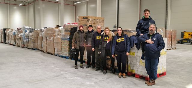 Alimentos no perecederos, pañales, ropa de abrigo, productos de limpieza y aseo, potitos y leche, recolectados por la Plataforma Universitaria por la Paz de la Universidad Católica de Murcia, en la que participa el Comité Olímpico Español, ya están en Polonia para ser entregados a los refugiados de la guerra en Ucrania. El tráiler de ESP Solutions llegaba a Katowice durante la madrugada del viernes al sábado donde le esperaban los voluntarios de la expedición de la UCAM para ayudar en la descarga y entregar el material a los responsables de realizar el reparto sobre el terreno.