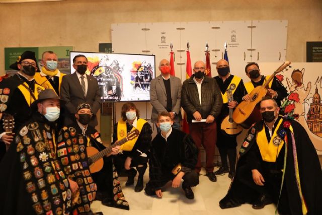 Murcia acogerá durante la próxima semana la XXXIII edición del Certamen Internacional de Tunas ‘Costa Cálida'. El evento ha sido presentado este martes en la Sala de Corregidores del Ayuntamiento de Murcia por el Alcalde José Antonio Serrano y por el concejal de Cultura, Turismo y Deportes, Pedro García Rex. Durante el acto también se ha desvelado el cartel del certamen obra de Marcelino Menéndez, pintor mexicano afincado en Murcia, fallecido recientemente.