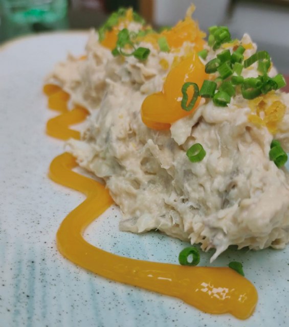 El otro clásico del aperitivo murciano es una reinvención de éxito del chef, su ensaladilla de mújol. “El mújol, que está en plena temporada, lo asamos al horno, con la grasa y jugos del asado preparamos la mahonesa de la ensaladilla, ha sido una tapa de mucho éxito en nuestro restaurante de Águilas, Alboroque”, detalla el dueño y chef de los fogones de Barrigaverde, Juampa Ortiz.
