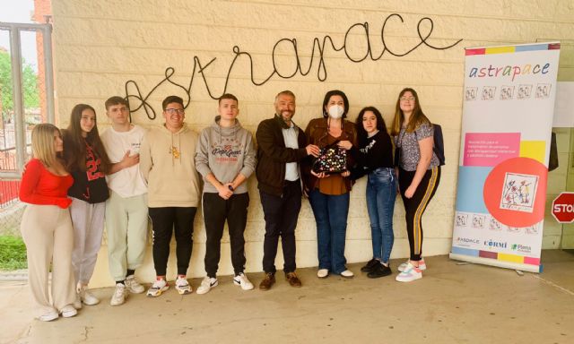 Los alumnos de FP de Estética del IES Ramón y Cajal hicieron entrega ayer de casi 500 euros al director del Centro de Día de Astrapace, José Candel. Esta fue la cantidad recaudada en la segunda edición del evento solidario "Solidarizarte", organizado e ideado por la profesora Catalina Sánchez Balsalobre y celebrado el pasado mes de marzo en el propio centro.