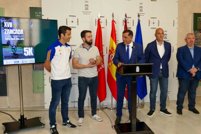 El próximo viernes 3 de junio tendrá lugar la XVII edición de la ‘Zancada de Llano de Brujas. Trofeo Miguel Ángel López'. La prueba ha sido presentada este martes en el Ayuntamiento de Murcia por el alcalde de Murcia, José Antonio Serrano, que ha estado acompañado por Pedro García Rex, concejal de Deportes; Juan Vicente Larrosa, concejal Empleo, Comercios y Mercados, y por el marchador Miguel Ángel López.
