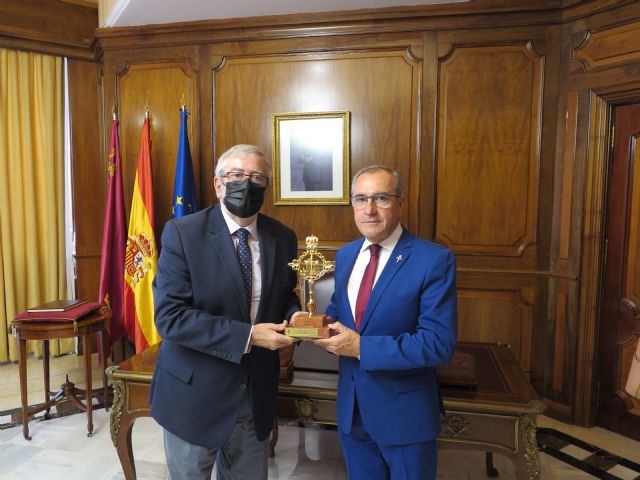 El presidente de la Asamblea Regional, Alberto Castillo, ha recibido la distinción que la Junta de la Cofradía del Cristo del Perdón le ha otorgado a la Asamblea Regional como Cofrade de Honor, por el 40 Aniversario de la aprobación del Estatuto de Autonomía. El presidente de la citada cofradía, Diego Avilés, le ha hecho entrega de una metopa distintiva de la hermandad, con una placa de reconocimiento.