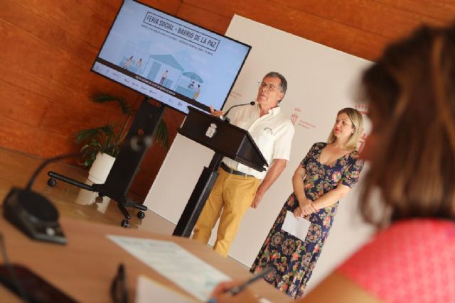 ‘Juntos hacemos de La Paz un barrio de Murcia'. Bajo esta consigna, la concejalía de Mayores, Vivienda y Servicios Sociales, que dirige la edil Paqui Pérez, ha presentado este jueves en rueda de prensa el evento ‘Feria Social en La Paz', con la finalidad de dar a conocer a los vecinos del barrio el proyecto municipal de intervención comunitaria ‘Conexión Vital La Paz'.