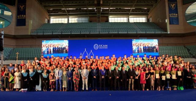 El Palacio de los Deportes de Murcia ha acogido esta tarde el acto de imposición de becas y entrega de diplomas a la IX promoción del Instituto Superior de Formación Profesional San Antonio. Asimismo se han entregado los premios a los mejores expedientes de cada uno de sus títulos.