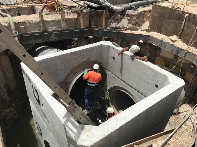 El colector es especialmente sensible a los episodios de lluvia ya que cuando llueve aumenta considerablemente su caudal, dificultando la reparación de la avería 2 Entre los trabajos previos a la actuación tenemos, la protección de los servicios afectados, tales como telefónica, internet, canalizaciones de riego, la construcción de dos arquetas, la producción de pieza ovoidal para conseguir la transición entre conducciones, el blindado de paredes, etc.