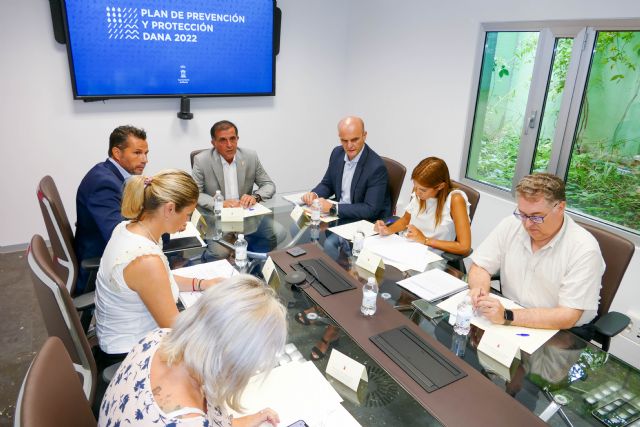El Alcalde José Antonio Serrano, acompañado por el vicealcalde Mario Gómez, y los concejales Paqui Pérez, Enrique Lorca, Ainhoa Sánchez,  Carmen Fructuoso y Andrés Guerrero, han mantenido hoy una reunión para poner en común el Plan de Prevención y Protección DANA 2022.