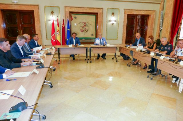 El Alcalde de Murcia José Antonio Serrano, acompañado por el Delegado del Gobierno José Vélez, y el concejal de Seguridad Ciudadana y Gestión Económica, Enrique Lorca, ha presidido esta mañana la Junta Local de Seguridad con motivo de la Feria de Murcia 2022 y los carnavales de Cabezo de Torres.