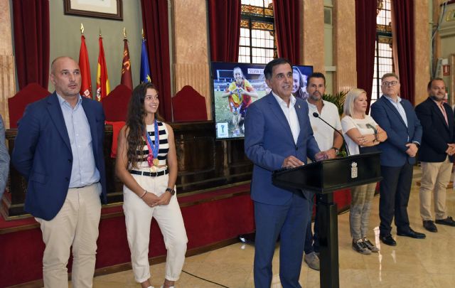La jugadora de El Palmar ha sido recibida en el Ayuntamiento por el Alcalde y miembros de la corporación municipal