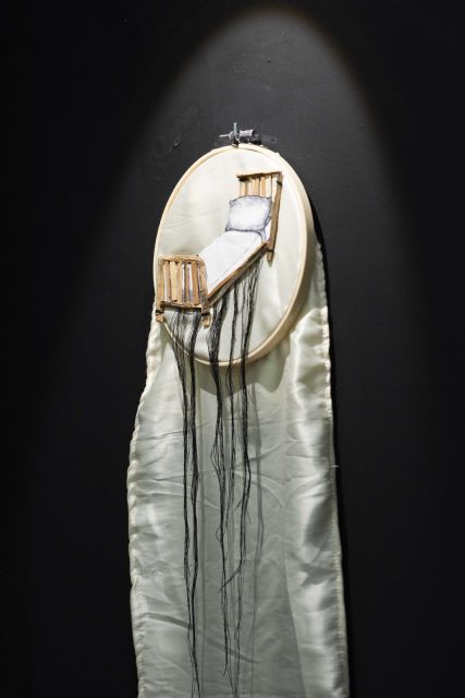 La muestra está formada por obras de diferentes materiales, entre los que predomina el hilo y la lana, la tela y la cerámica. Asimismo, el bordado es una técnica muy presente. “La acción de coser a mano, clavar y desclavar la aguja, repetir el mismo movimiento una y otra vez, deshacer y rehacer, herir la tela. La historia se vuelve bordado”, concluye la artista.