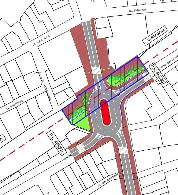 En dicha propuesta, y tal y como se refleja en la memoria y planos del proyecto, para poder ejecutar la obra, es necesaria ocupar una parte de los terrenos catalogados como vía verde. Es por ello que el Consistorio murciano ha considerado necesario hacer una modificación del convenio para, por un lado, dar continuidad al actual trazado provisional de la vía verde a través de las superficies peatonales y aceras, y a su vez poder realizar la glorieta en este punto.
