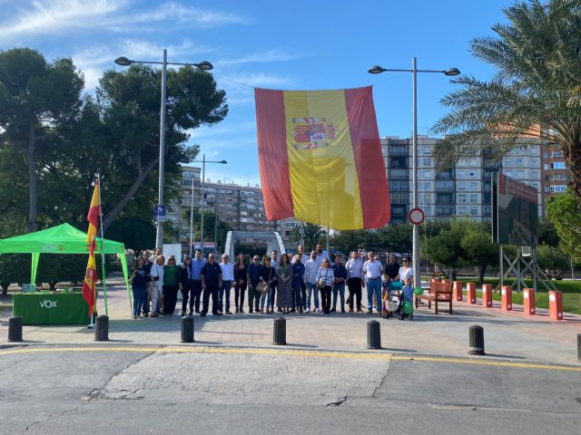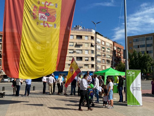 VOX ha acudido a la Plaza De la Cruz Roja, en Murcia, donde ha festejado el Día de la Hispanidad junto a afiliados y simpatizantes.