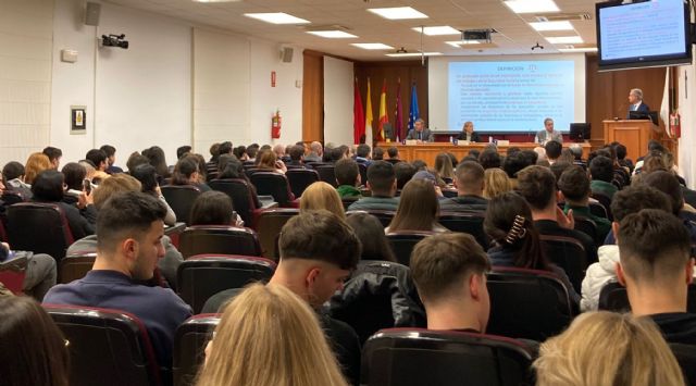 Estudiantes y profesores de la Facultad de Derecho de la UCAM han llenado el salón de actos del Campus de Los Jerónimos para celebrar la presentación oficial de su nuevo curso. En él han intervenido Josefina García, rectora de la Universidad Católica; Jaime Sánchez-Vizcaíno, decano de la Facultad; Manuel Ruiz, vicerrector de Ordenación Académica y Calidad, y Ricardo Gabaldón, presidente del Consejo General de Graduados Sociales de España, quien impartió la conferencia 'La trasformación del derecho del trabajo en la era post covid: salidas profesionales'.