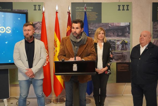 El vicealcalde Mario Gómez y la concejala de Mayores, Vivienda y Servicios Sociales, Paqui Pérez, junto al  presidente de la Asociación de Empresarios Feriantes de Murcia, Miguel García, y el vicepresidente de la Asamblea de Cruz Roja Murcia, José Ignacio Guzmán, han presentado esta mañana la campaña de recogida de alimentos prevista para este jueves 22 de diciembre en el Reino Mágico de Murcia.