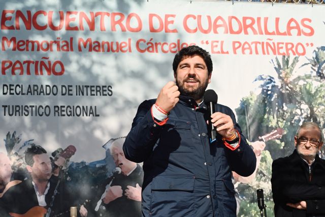 El presidente de la Comunidad, Fernando López Miras, asistió hoy a la trigésimo cuarta edición del Encuentro de Cuadrillas que se celebra en la pedanía murciana de Patiño, donde resaltó que esta jornada es “una tradición que forma parte de nuestra cultura y nuestra identidad”.