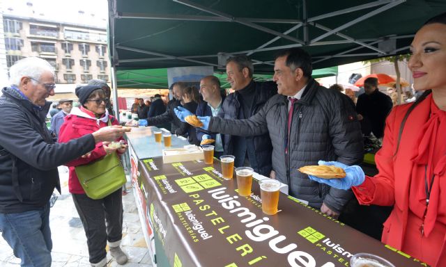 Tras finalizar la presentación, Cristóbal Pérez ha firmado ejemplares del cartel en la Plaza Romea, donde ha tenido lugar una degustación de productos típicos murcianos por gentileza de Pastelería Luis Miguel, Cerveza Estrella de Levante, Melones El Abuelo, Dulces Reina y Café Salzillo. La tradicional mascota del Entierro de la Sardina y sus habituales charangas han animado a los murcianos que se han acercado hasta este punto del centro de la ciudad en esta mañana de sábado.
