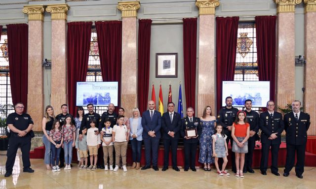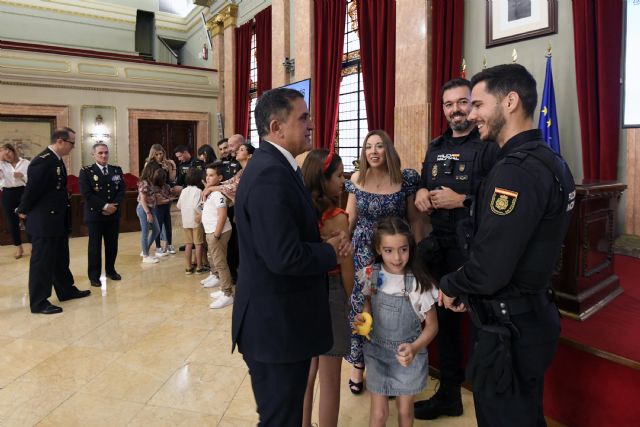 En la recepción a la Unidad de Policía Nacional también ha estado presente el Jefe Superior de la Policía Nacional en la Región de Murcia, Ignacio del Olmo, que ha recibido una placa de manos del Alcalde de Murcia.