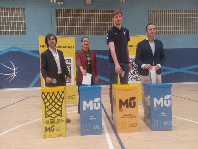 Esta mañana, la concejala de Movilidad Sostenible y Limpieza Viaria, Carmen Fructuoso, junto a José Miguel Garrido, director Comercial y de Marketing del UCAM Murcia, acompañado de Nemanja Radovic, Ala-Pívot de este equipo y de Eduardo Azcona, Delegado de PreZero en Murcia han presentado las principales actividades de esta iniciativa.